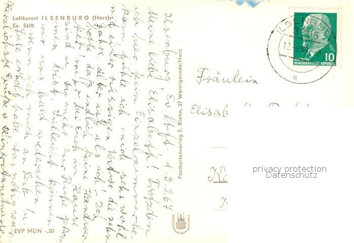 73549879 alte Postkarte Ilsenburg Harz Ev Stift postalisch gelaufen Erhaltung siehe scans [WerneD78] KatCode: 11110015085190