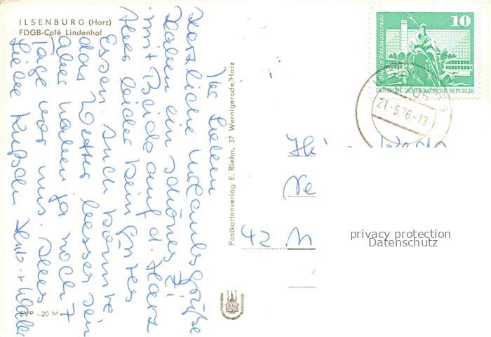 74016914 alte Postkarte Ilsenburg Harz FDGB Cafe Lindenhof postalisch gelaufen Erhaltung siehe scans [WerneD78] KatCode: 11110015085190