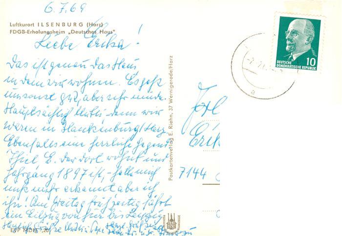 73895281 alte Postkarte Ilsenburg Harz FDGB Erholungsheim Deutsches Haus postalisch gelaufen Erhaltung siehe scans [WerneD78] KatCode: 11110015085190