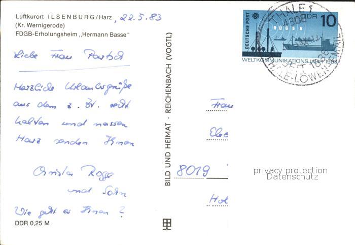 72402307 alte Postkarte Ilsenburg Harz FDGB Erholungsheim Hermann Basse postalisch gelaufen Erhaltung siehe scans KatCode: 11110015085190