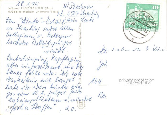72032587 alte Postkarte Ilsenburg Harz FDGB Erholungsheim Hermann Basse postalisch gelaufen Erhaltung siehe scans KatCode: 11110015085190