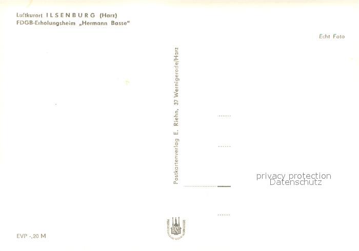 73717097 Ilsenburg Harz FDGB-Erholungsheim Hermann Basse postalisch nicht gelaufen Erhaltung siehe scans [LiesaD40] KatCode: 11110015085190