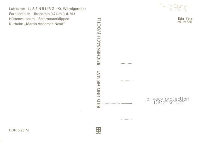 73046157 Ilsenburg Harz Forellenteich Ilsenstein Huettenmuseum Paternosterklippen Kurheim postalisch nicht gelaufen Erhaltung siehe scans [KathaD81] KatCode: 11110015085190