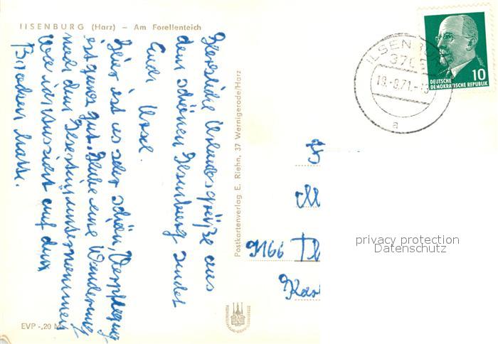 73099086 alte Postkarte Ilsenburg Harz Forellenteich Schwaene postalisch gelaufen Erhaltung siehe scans [KathaD81] KatCode: 11110015085190