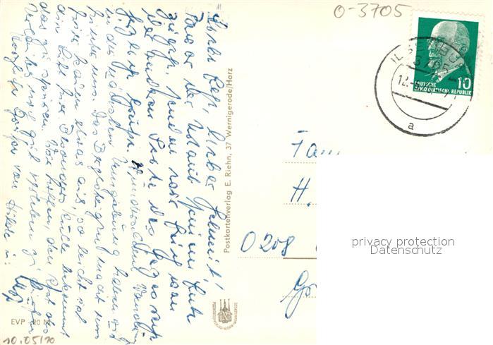72929159 alte Postkarte Ilsenburg Harz Friedenspark Markt Goetheschule Thaelmannstrasse postalisch gelaufen Erhaltung siehe scans [AndreD76] KatCode: 11110015085190