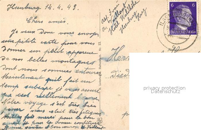 43509848 alte Postkarte Ilsenburg Harz Ilsestein postalisch gelaufen Erhaltung siehe scans [LiesaD40] KatCode: 11110015085190
