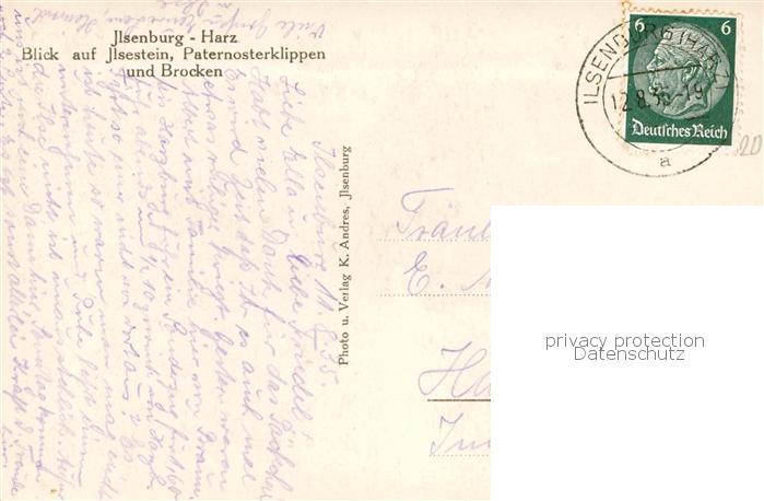 73811506 alte Postkarte Ilsenburg Harz mit Ilsestein Paternosterklippen und Brocken postalisch gelaufen Erhaltung siehe scans [WerneD78] KatCode: 11110015085190