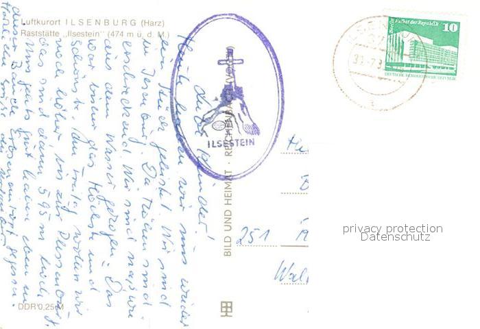 73295677 alte Postkarte Ilsenburg Harz Raststaette Ilsestein postalisch gelaufen Erhaltung siehe scans [LiesaD40] KatCode: 11110015085190