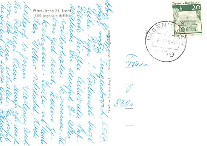 73888419 alte Postkarte Imgenbroich Pfarrkirche St Josef Inneres postalisch gelaufen Erhaltung siehe scans [FriedD77] KatCode: 11110005354020