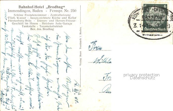 31731335 alte Postkarte Immendingen Bahnhof-Hotel Brodhag postalisch gelaufen Erhaltung siehe scans KatCode: 11110008327025