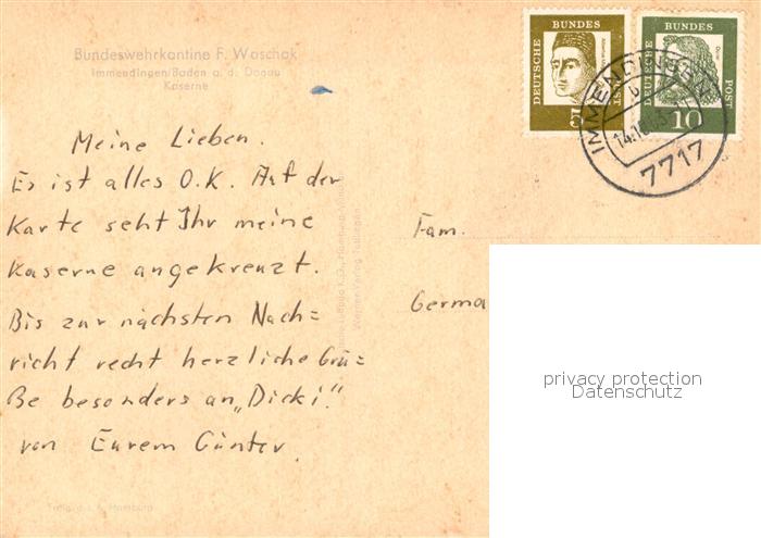 73550007 alte Postkarte Immendingen Bundeswehrkaserne Fliegeraufnahme postalisch gelaufen Erhaltung siehe scans [WerneD78] KatCode: 11110008327025