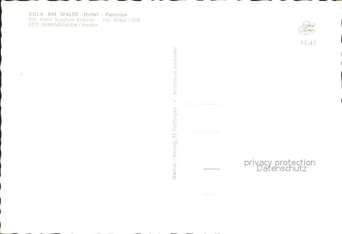 72100360 Immendingen Hotel Pension Villa am Walde postalisch nicht gelaufen Erhaltung siehe scans KatCode: 11110008327025