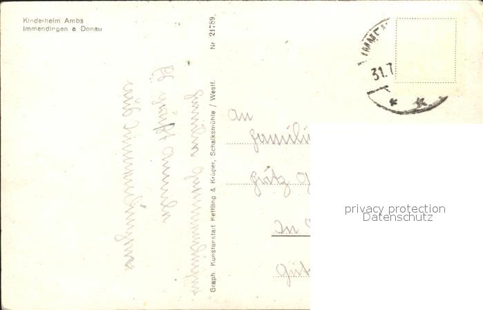41994295 alte Postkarte Immendingen Kinderheim Ambs Speisesaal postalisch gelaufen Erhaltung siehe scans KatCode: 11110008327025