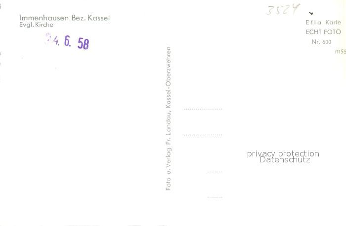 43345902 Immenhausen Hessen Ev Kirche postalisch nicht gelaufen Erhaltung siehe scans [WerneD78] KatCode: 11110006633014