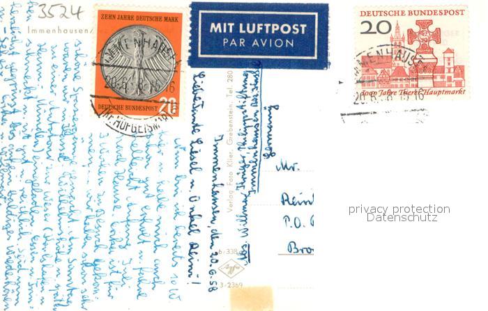 73702355 alte Postkarte Immenhausen Hessen Fliegeraufnahme Totalansicht postalisch gelaufen Erhaltung siehe scans [LiesaD40] KatCode: 11110006633014