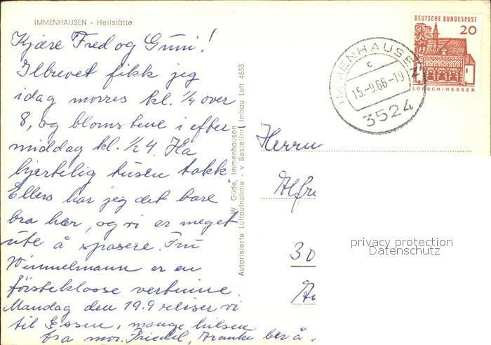 72033677 alte Postkarte Immenhausen Hessen Heilstaettte postalisch gelaufen KatCode: 11110006633014