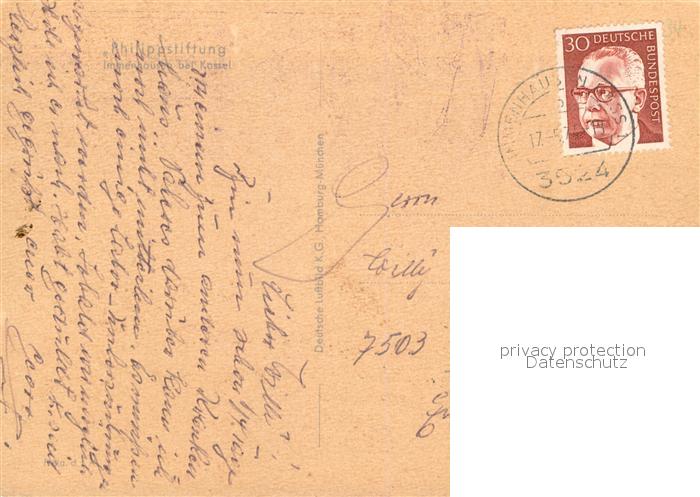 73727359 alte Postkarte Immenhausen Hessen Philippstiftung Fliegeraufnahme postalisch gelaufen Erhaltung siehe scans [WerneD78] KatCode: 11110006633014