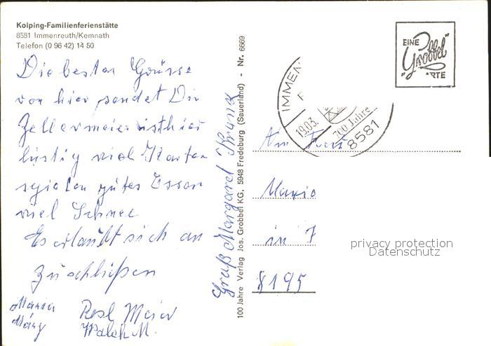 72067805 alte Postkarte Immenreuth Kemnaten Kolping Familienferienstaette postalisch gelaufen KatCode: 11110009377127