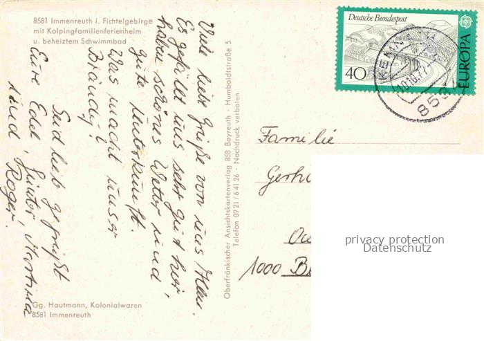 74026280 alte Postkarte Immenreuth Kolpingfamilienferienheim Freibad Panorama Fichtelgebirge postalisch gelaufen Erhaltung siehe scans [FriedD77] KatCode: 11110009377127