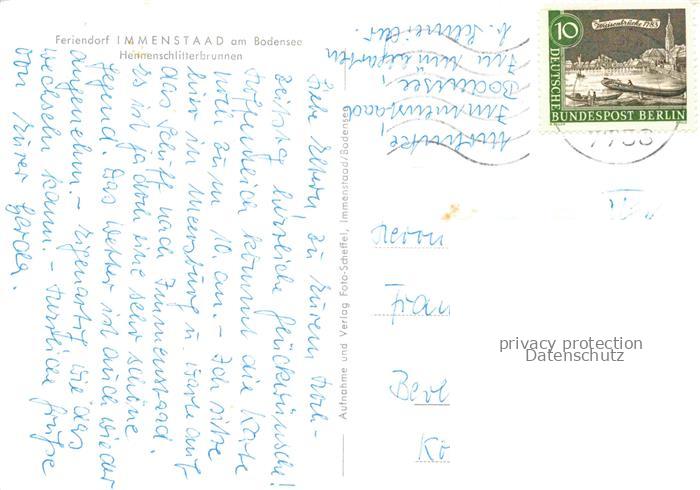 34145606 alte Postkarte Immenstaad Bodensee BW Feriendorf Immenstaad Hennenschlitterbrunnen postalisch gelaufen Erhaltung siehe scans [WerneD78] KatCode: 11110008435024