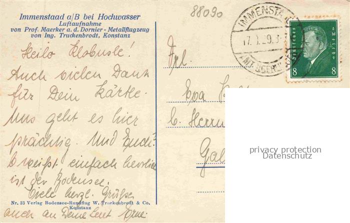 34143662 alte Postkarte Immenstaad Bodensee BW Hochwasser Fliegeraufnahme postalisch gelaufen Erhaltung siehe scans [WerneD78] KatCode: 11110008435024