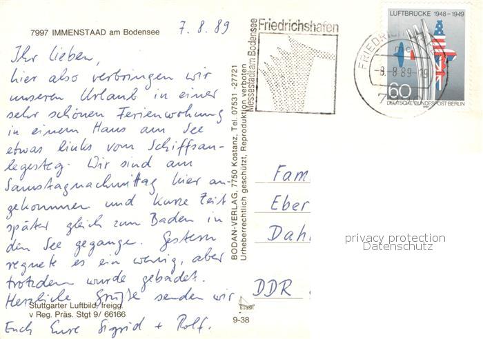 73776733 alte Postkarte Immenstaad Bodensee Fliegeraufnahme postalisch gelaufen Erhaltung siehe scans [WerneD78] KatCode: 11110008435024