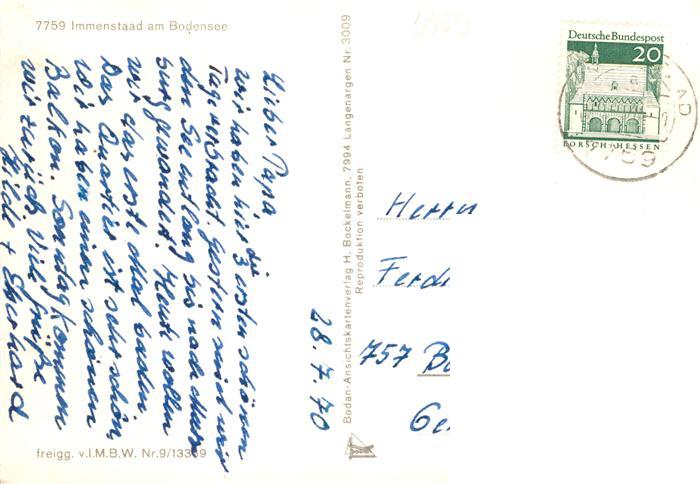 73941518 alte Postkarte Immenstaad Bodensee Fliegeraufnahme Hennenbrunnen Partie am Landeplatz Pulverturmhaus postalisch gelaufen Erhaltung siehe scans [WerneD78] KatCode: 11110008435024