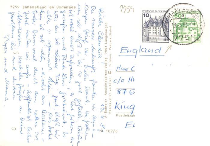 73941907 alte Postkarte Immenstaad Bodensee Fliegeraufnahme Promenade Bootshafen Seepanorama postalisch gelaufen Erhaltung siehe scans [WerneD78] KatCode: 11110008435024