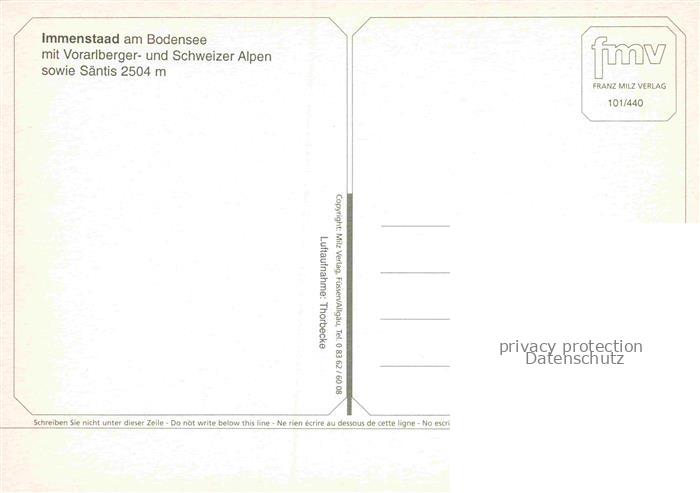 74132324 Immenstaad Bodensee Panorama Blick ueber den See Vorarlberger Alpen Schweizer Alpen Saentis postalisch nicht gelaufen Fliegeraufnahme Erhaltung siehe scans [FriedD77] Fliegeraufnahme Frie Katcode 11110008435024