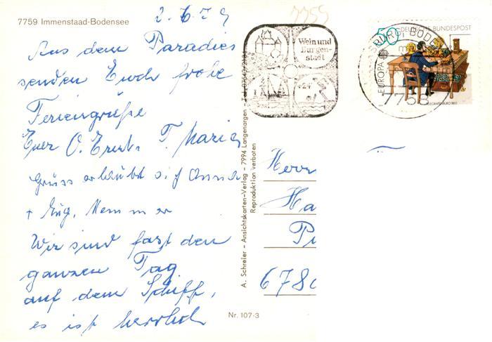 73941482 alte Postkarte Immenstaad Bodensee Promenade postalisch gelaufen Erhaltung siehe scans [WerneD78] KatCode: 11110008435024