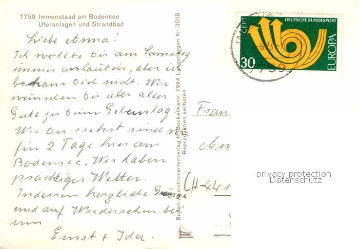 72639628 alte Postkarte Immenstaad Bodensee Uferanlagen und Strandbad postalisch gelaufen Erhaltung siehe scans [FriedD77] KatCode: 11110008435024