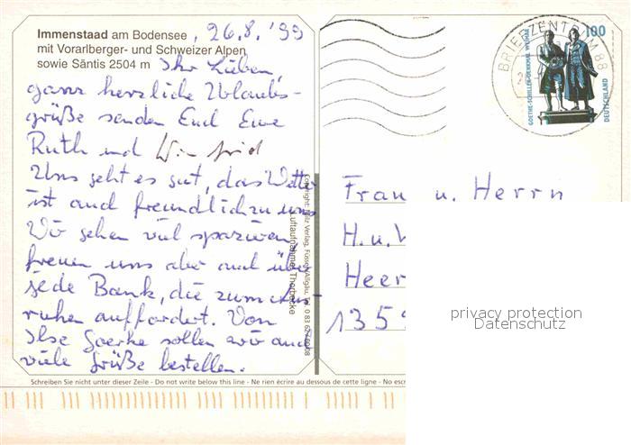 72816500 alte Postkarte Immenstaad Bodensee Vorarlberger- Schweizer Alpen Saentis postalisch gelaufen Erhaltung siehe scans [NatalD47] KatCode: 11110008435024