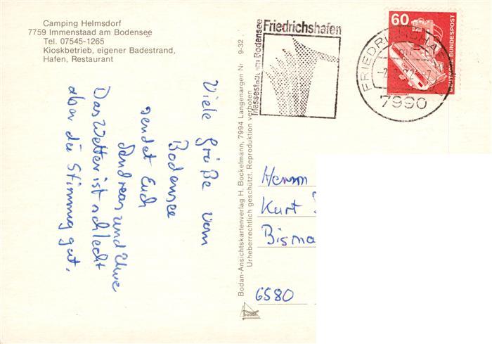 73941873 alte Postkarte Immenstaad Bodensee Yachthafen Camping Helmsdorf Restaurant Liegewiese postalisch gelaufen Erhaltung siehe scans [WerneD78] KatCode: 11110008435024