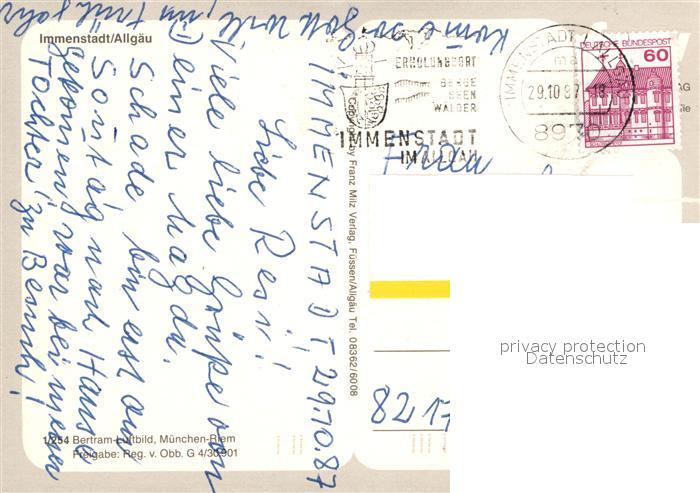 73005290 alte Postkarte Immenstadt Allgaeu Fliegeraufnahme postalisch gelaufen Erhaltung siehe scans [WerneD78] KatCode: 11110009780124