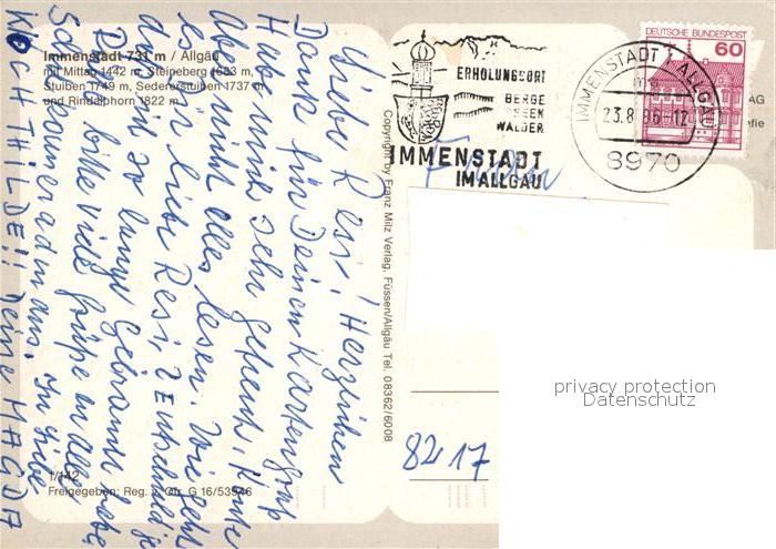 73005289 alte Postkarte Immenstadt Allgaeu Fliegeraufnahme postalisch gelaufen Erhaltung siehe scans [WerneD78] KatCode: 11110009780124