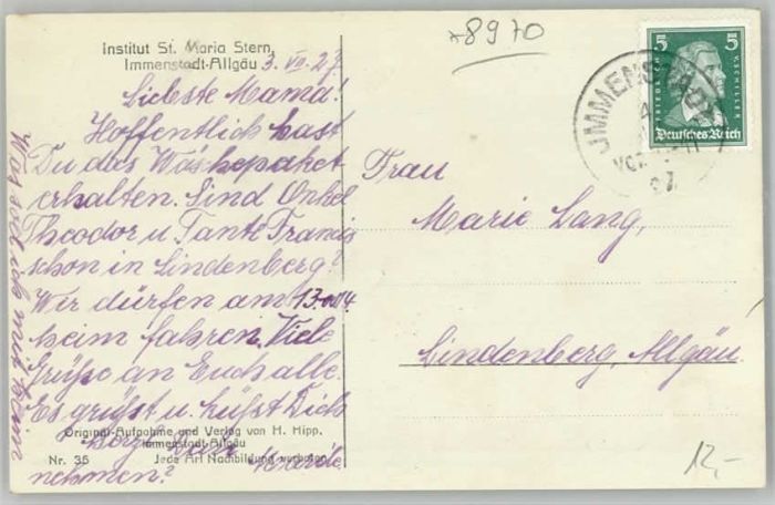 40245956 Immenstadt Allgaeu Immenstadt St. Maria Stern x 1927 KatCode 11110009780124