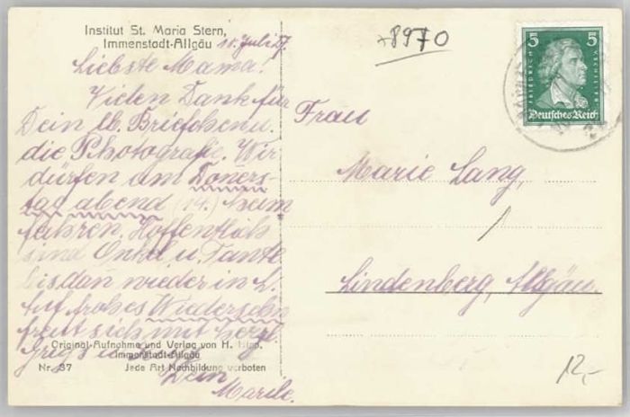 40245954 Immenstadt Allgaeu Immenstadt St. Maria Stern x 1927 KatCode 11110009780124