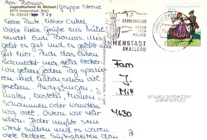 72654738 alte Postkarte Immenstadt Allgaeu Jugendkurheim Sankt Michael postalisch gelaufen Erhaltung siehe scans [AndreD76] KatCode: 11110009780124