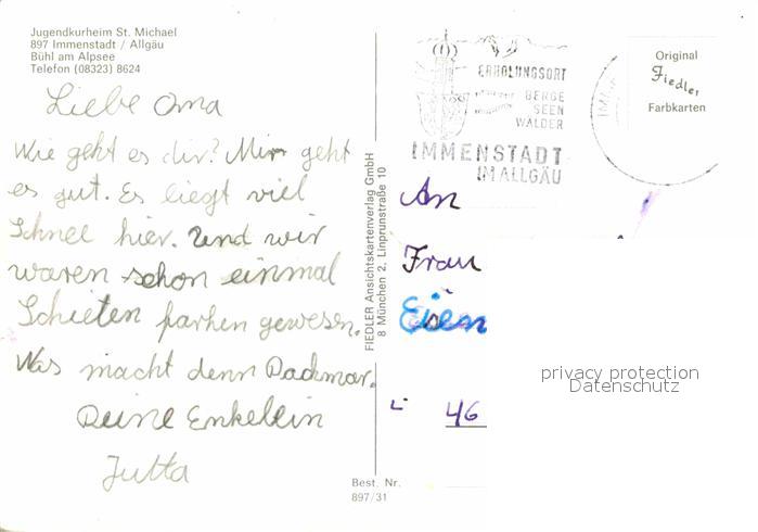 72654743 alte Postkarte Immenstadt Allgaeu Jugendkurheim Sankt Michael postalisch gelaufen Erhaltung siehe scans [AndreD76] KatCode: 11110009780124