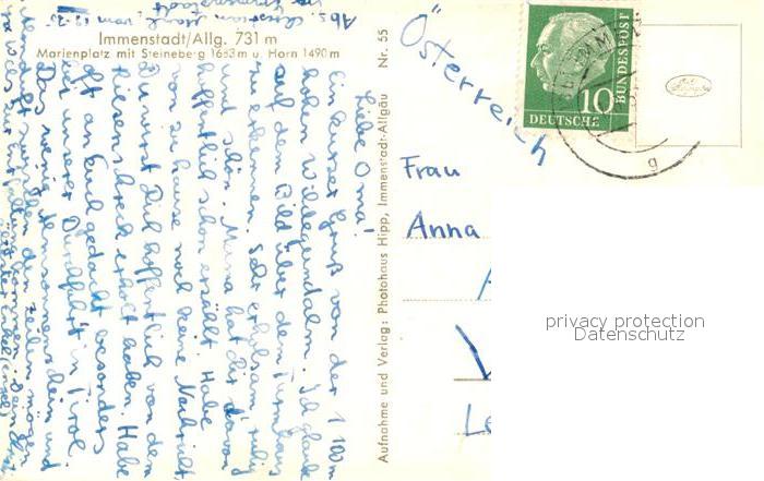 73034176 alte Postkarte Immenstadt Allgaeu Marienplatz Steineberg postalisch gelaufen Erhaltung siehe scans [KathaD81] KatCode: 11110009780124