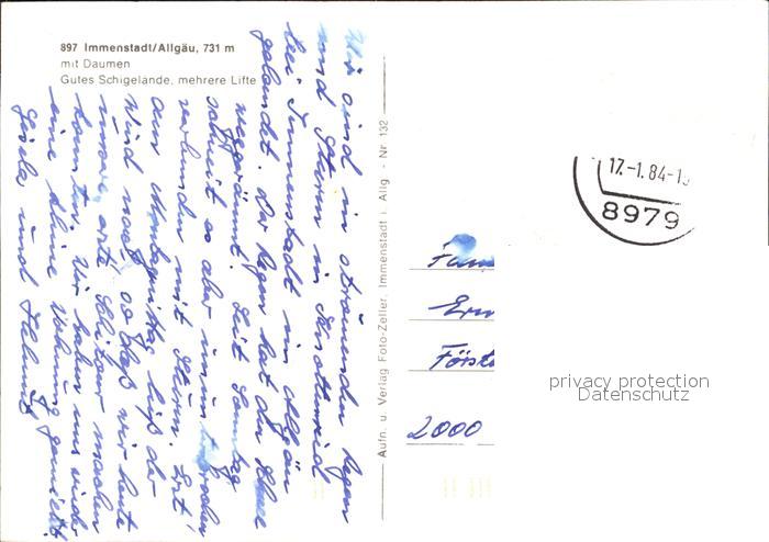 72463869 alte Postkarte Immenstadt Allgaeu mit Daumen postalisch gelaufen Erhaltung siehe scans KatCode: 11110009780124