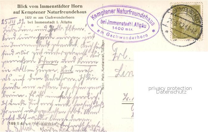 73575813 alte Postkarte Immenstadt Allgaeu Panorama Blick vom Immenstaedter Horn auf Kemptener Naturfreundehaus Gschwenderhorn Allgaeuer Alpen postalisch gelaufen Erhaltung siehe scans [FriedD77] KatCode: 11110009780124