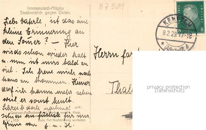 73572094 alte Postkarte Immenstadt Allgaeu Panorama Blick vom Stuiben gegen Osten Alpenpanorama postalisch gelaufen Erhaltung siehe scans [FriedD77] KatCode: 11110009780124