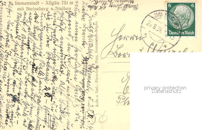 73584129 alte Postkarte Immenstadt Allgaeu Panorama mit Steineberg Stuiben postalisch gelaufen Erhaltung siehe scans [KathaD81] KatCode: 11110009780124