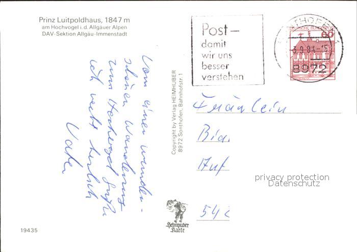 71947440 alte Postkarte Immenstadt Allgaeu Prinz Luitpoldhaus Schutzhuette am Hochvogel mit Fuchskarspitze postalisch gelaufen KatCode: 11110009780124