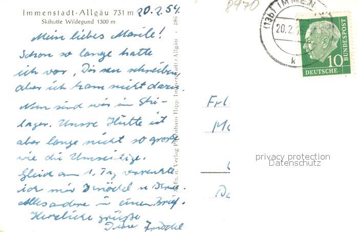 43352187 alte Postkarte Immenstadt Allgaeu Skihuette Wildegrund postalisch gelaufen Erhaltung siehe scans [WerneD78] KatCode: 11110009780124