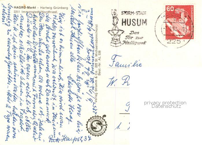73726305 alte Postkarte Immenstedt Nordfriesland Hagro Markt Gedenkstein Park postalisch gelaufen Erhaltung siehe scans [FriedD77] KatCode: 11110001054057