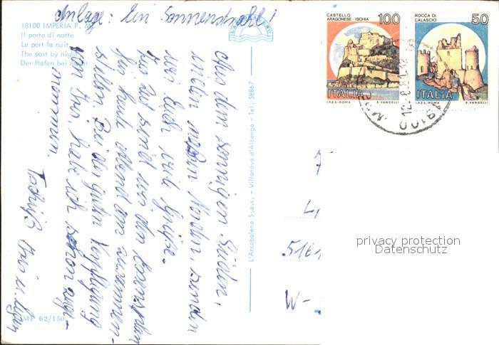 old postcard Imperia Hafen bei Nacht postalisch gelaufen Erhaltung siehe scans