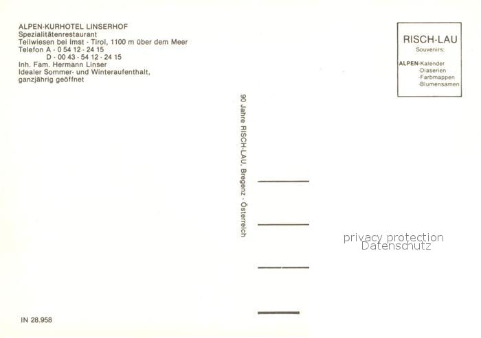 12975277 Imst Tirol Alenhotel Linserhof postalisch nicht gelaufen Erhaltung siehe scans [NatalD47] KatCode: 11390334070203