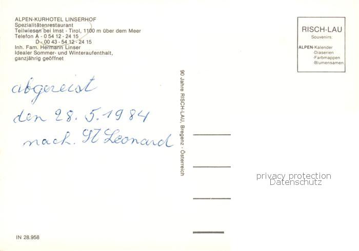 73787199 Imst Tirol Alpen Kurhotel Linserhof Panorama Hallenbad Gaststube postalisch nicht gelaufen Erhaltung siehe scans [WerneD78] KatCode: 11390334070203